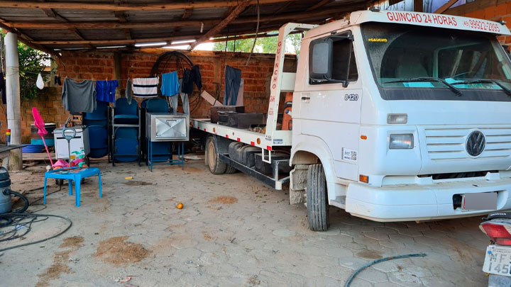 Era por volta das 16h quando o local foi verificado. Geladeiras, fogão, carrinho de cachorro quente e outros objetos estavam guardados em um barracão.