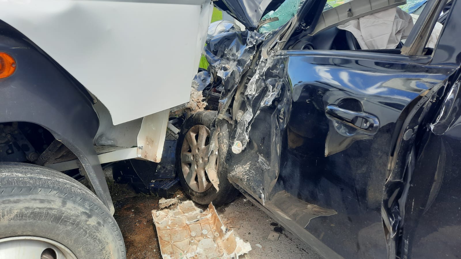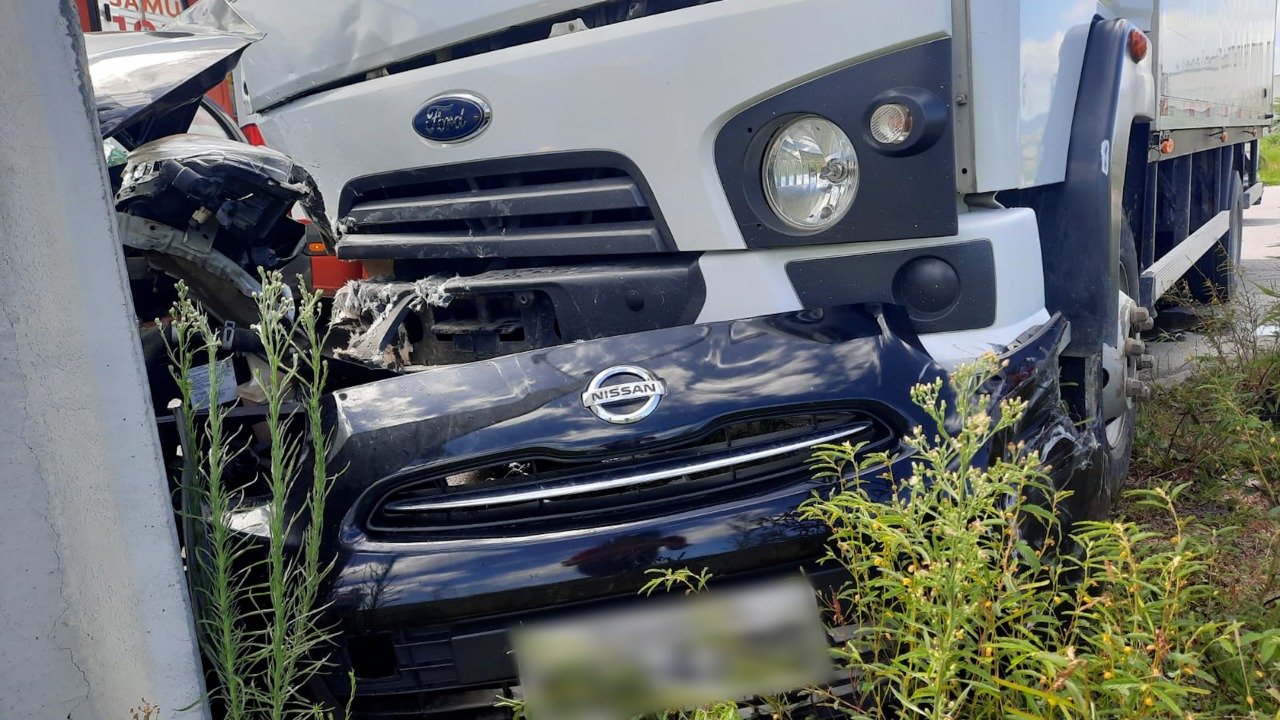 A frente do Nissan acabou ficando completamente destruída com o impacto e a condutora ficou presa nas ferragens, não se tem informações sobre o seu estado de saúde. Já o motorista e o ajudante do caminhão não tiveram ferimentos graves.