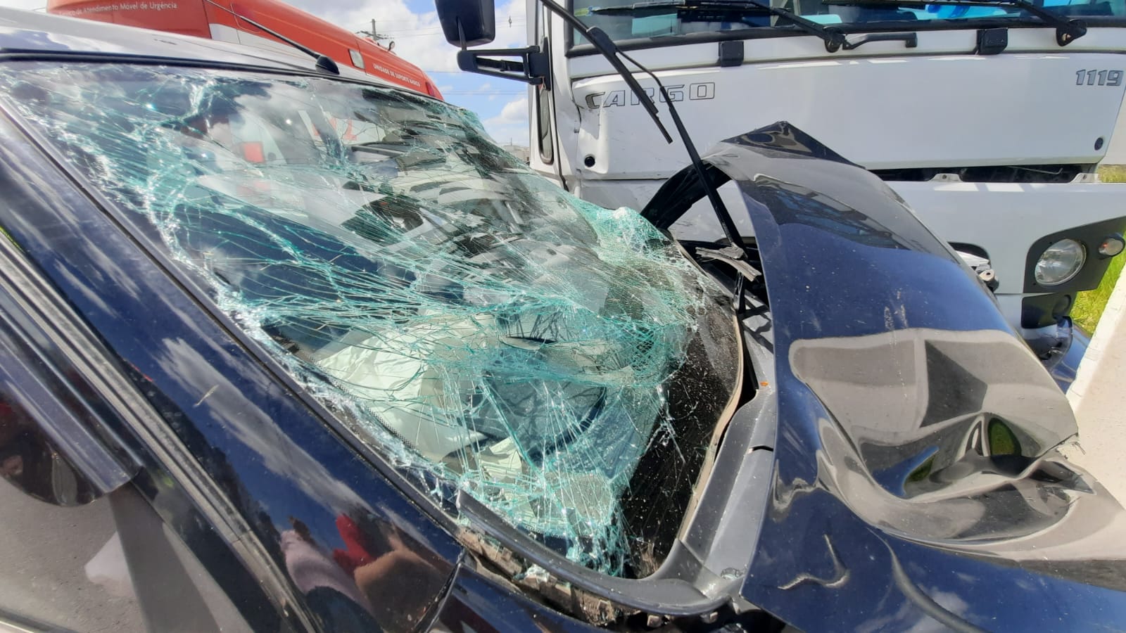 EM TIJUCAS - Condutora de veículo colide em traseira de caminhão estacionado