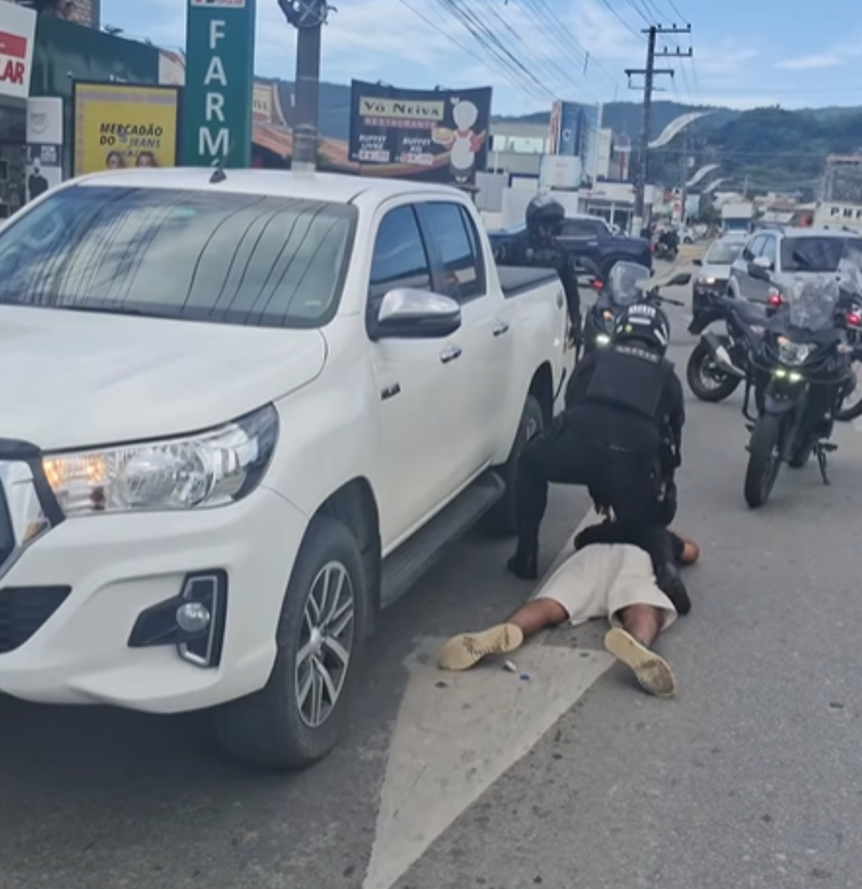 A Guarda Municipal recebeu a informação do furto por meio de grupos institucionais, o que permitiu que a equipe iniciasse imediatamente as buscas pela caminhonete. Próximo à rotatória de Porto Belo, os agentes identificaram um veículo semelhante, porém com uma placa diferente.
