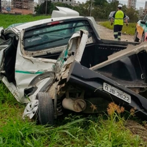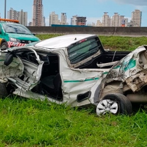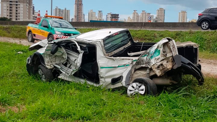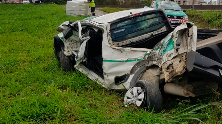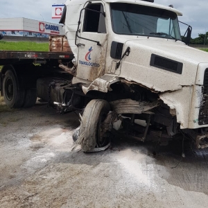 De acordo com relatos de testemunhas, uma VW/Saveiro, com placas de Penha/SC, estava parada no acostamento, quando o motorista do caminhão perdeu o controle da direção e colidiu contra a caminhonete.