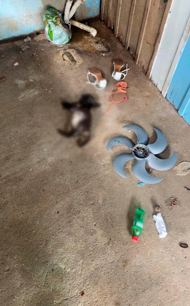 No local, os agentes encontraram três cachorros filhotes mortos. Um deles estava na garagem da casa, enquanto os outros dois foram localizados enrolados em um saco plástico dentro de uma lixeira em frente ao imóvel, indicando possível tentativa de ocultação.