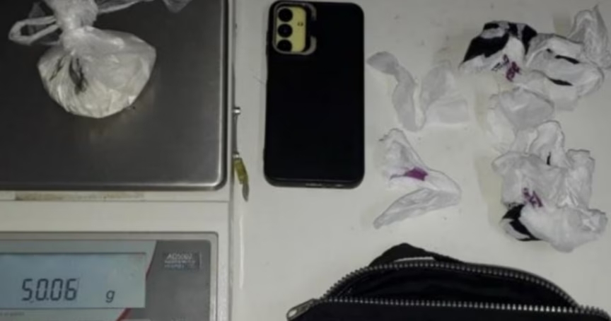 Durante a revista ao veículo, a equipe localizou porções de cocaína, um aparelho celular e materiais utilizados para embalar entorpecentes, indícios que reforçaram a suspeita de envolvimento com o tráfico.
