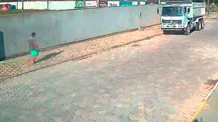 Câmeras de segurança das proximidades flagraram uma das passagens. Ele aparece caminhando tranquilamente pela calçada, próximo ao campo que pertence à Associação Recreativa Esportiva Everton Rodrigues de Bastos, utilizado por policiais.