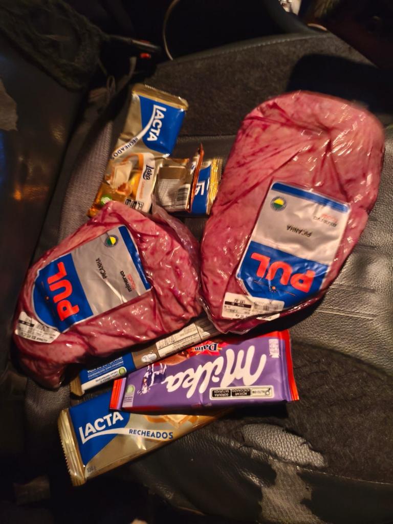 Segundo a PM, o suspeito havia subtraído duas peças de picanha e sete barras de chocolate, fugindo em direção à Rua Martin Pescador. Com as características informadas, os policiais localizaram o homem e realizaram a abordagem. Ele confessou ter entregue os itens a outro indivíduo.