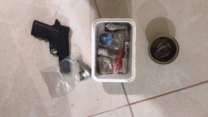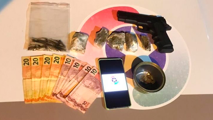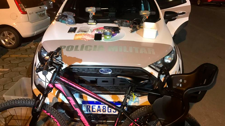 Várias porções de maconha, um simulacro de pistola, duas parafusadeiras, bateria, uma lixadeira rotativa, uma parafusadeira de impacto, R$120 em dinheiro, um celular e a bicicleta furtada foram localizados e apreendidos.
