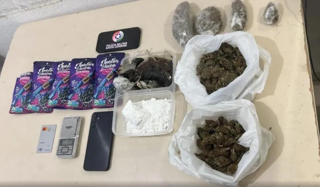 Ainda durante a conversa, o homem revelou que havia mais drogas em sua residência e que estava envolvido na atividade de tráfico há algumas semanas. No local, a PM apreendeu uma considerável quantidade de entorpecentes: 334 gramas de skunk (uma versão mais potente da maconha), 147 gramas de cocaína e 368 gramas de haxixe. Além das drogas, foram encontrados uma balança de precisão, um celular, um cartão de crédito e cinco cigarros eletrônicos contendo THC.