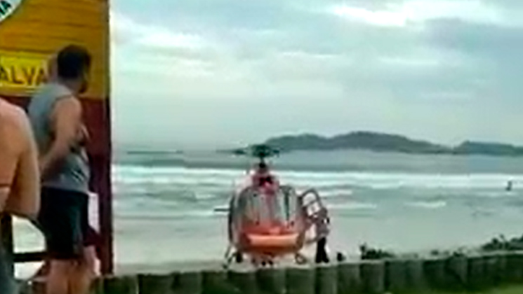 O helicóptero do Corpo de Bombeiros foi acionado na manhã desta terça-feira, 03 de janeiro, após um homem sofrer uma parada cardíaca na Praia de Bombas, localizada na Rua Rouxinol, em Bombinhas.