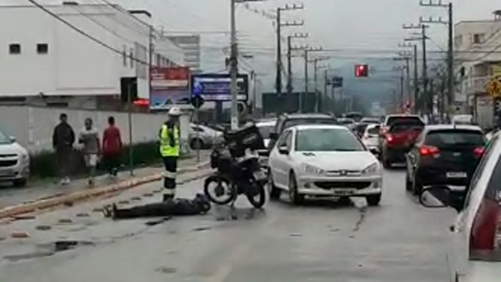 De acordo com as informações iniciais, o condutor permaneceu caído na via enquanto aguardava por atendimento de emergência. A vítima se queixava de dores em uma das pernas, trazendo a possibilidade de uma fratura no membro.