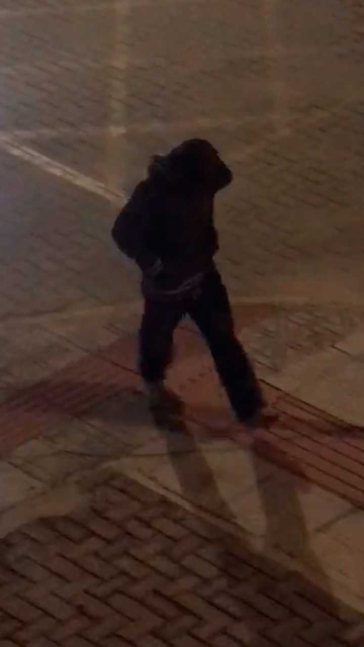 Populares que residem próximo ao local conseguiram filmar o momento da fuga do autor, que aparece nas imagens caminhando tranquilamente pela rua, segundos após danificar a vidraça do estabelecimento.