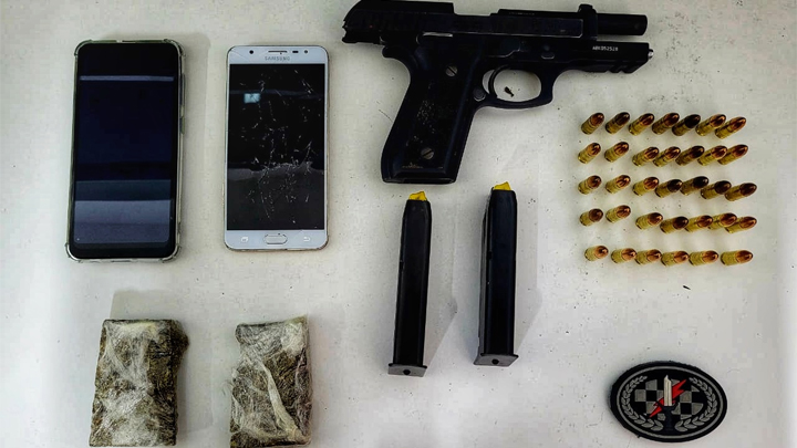Os militares ordenaram que ele largasse a arma e realizaram a abordagem. O criminoso passou por revista pessoal e com ele foram encontradas munições e um carregador, duas porções de maconha, além da pistola Taurus PT 917.