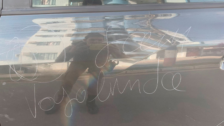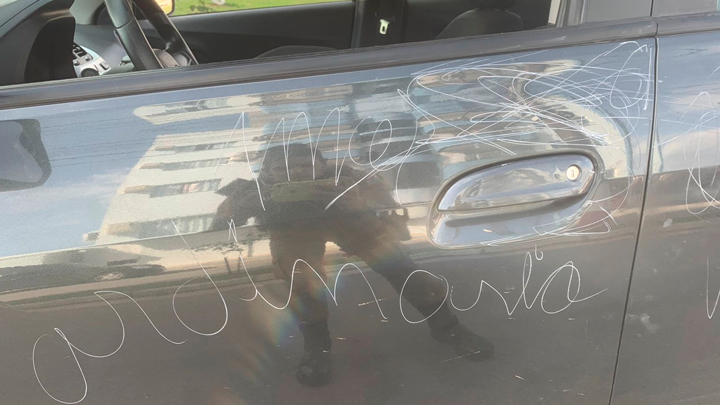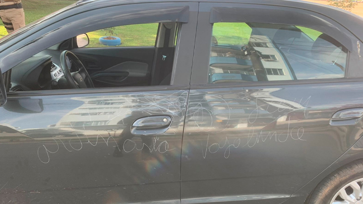 Era por volta das 10h quando percebeu que a lateral do automóvel estava com as frases “amor ordinário'' e "seu vagabundo” riscadas na lataria.
