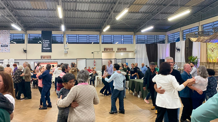 Nem a forte chuva que caiu durante toda a tarde desta segunda-feira, 06 de junho, intimidou os idosos que aproveitaram para se esquentar com uma animada dança no baile ou jogar atentamente o “binguinho” como eles carinhosamente chamam.