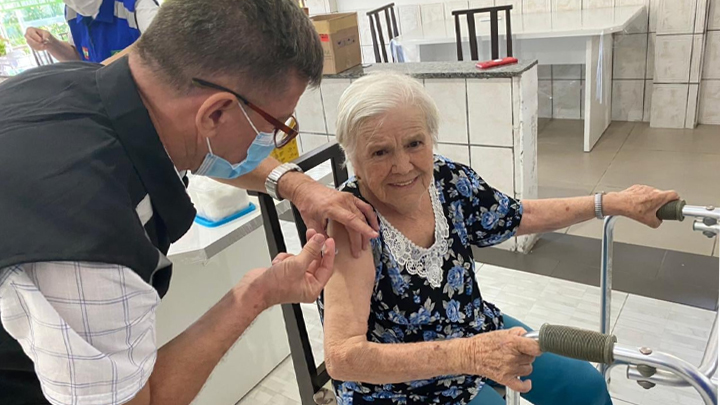 Na última sexta-feira, 05, o procedimento para aplicação da segunda dose de CoronaVac teve início no Lar de Idosos Santa Maria da Paz. Além dos residentes, outros profissionais da linha de frente da saúde também foram imunizados.