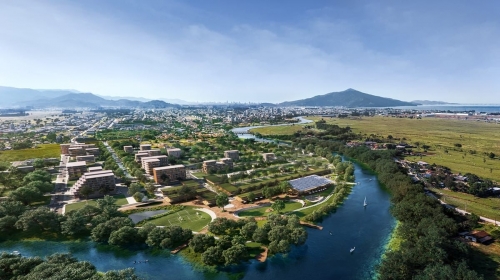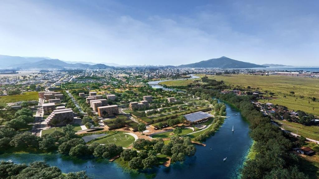 O projeto prevê infraestrutura completa, com pavimentação, drenagem, redes de água e esgoto, energia e iluminação pública. Também estão incluídos parque linear, ruas arborizadas, áreas verdes e integração com os rios Tijucas e Oliveira, além da divisão entre zonas residenciais, comerciais e ambientais.
