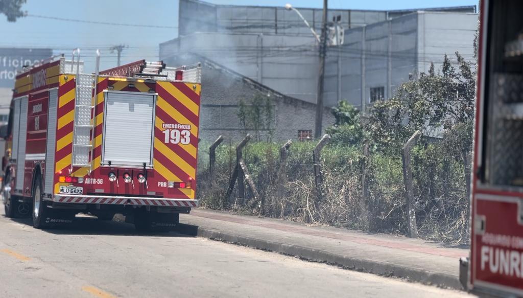 Dois caminhões de combate ao incêndio foram até o local e depois de muito trabalho, socorristas conseguiram controlar as chamas, que se espalharam por conta do vento.