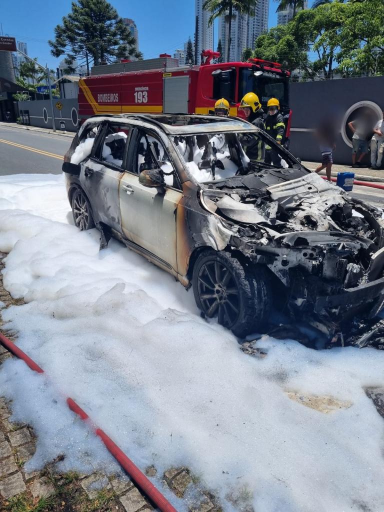 Um veículo Volvo XC90 foi completamente consumido pelo fogo na manhã desta sexta-feira, dia 21 de novembro, em Balneário Camboriú. O incêndio, mobilizou equipes do 1º Pelotão do Corpo de Bombeiros.