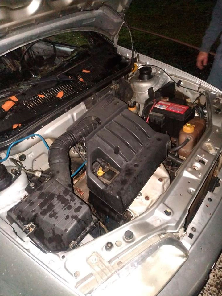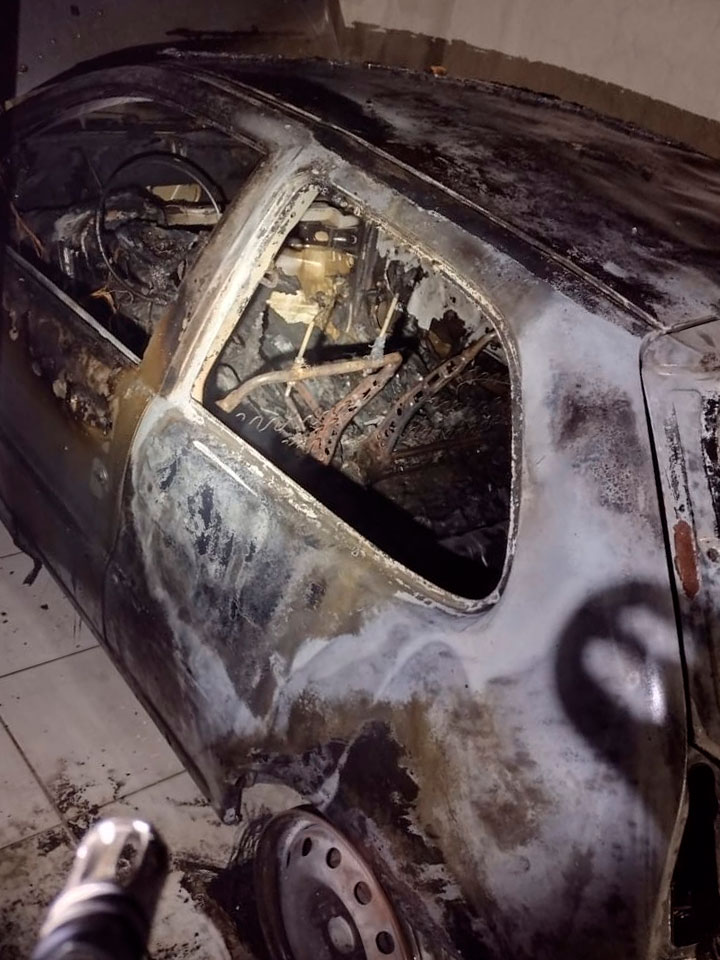 De acordo com a equipe do Corpo de Bombeiros, o incêndio teria iniciado na parte superior traseira, próximo do porta malas e desceram para a parte da frente, no percurso queimando todo o tanque. Apenas o compartimento do motor ficou praticamente intacto. A residência também não foi atingida.