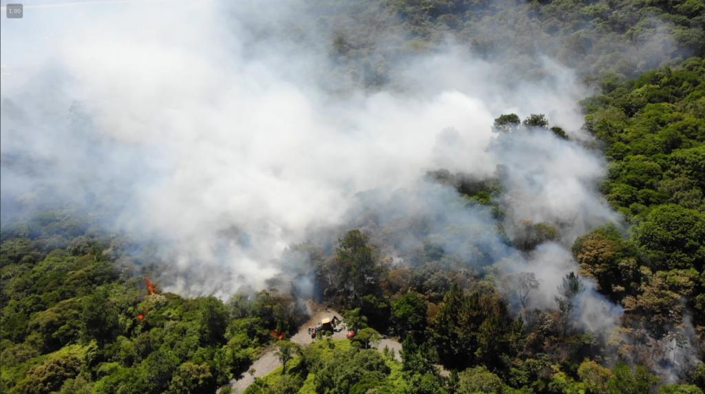 Um incêndio florestal atingiu uma área de Mata Atlântica na região da Interpraias, em Balneário Camboriú, na tarde de segunda-feira, 26 de janeiro.