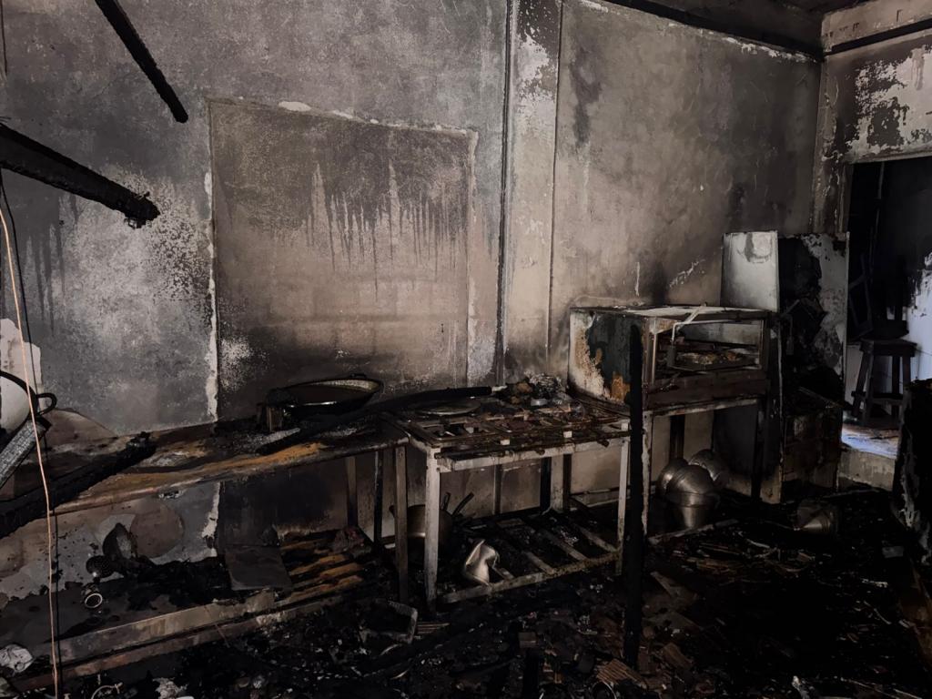 O fogo começou na parte térrea do prédio, onde funciona um estabelecimento comercial e destruiu completamente o espaço. Foram queimados móveis, um forno industrial, um refrigerador e diversos equipamentos eletrônicos.