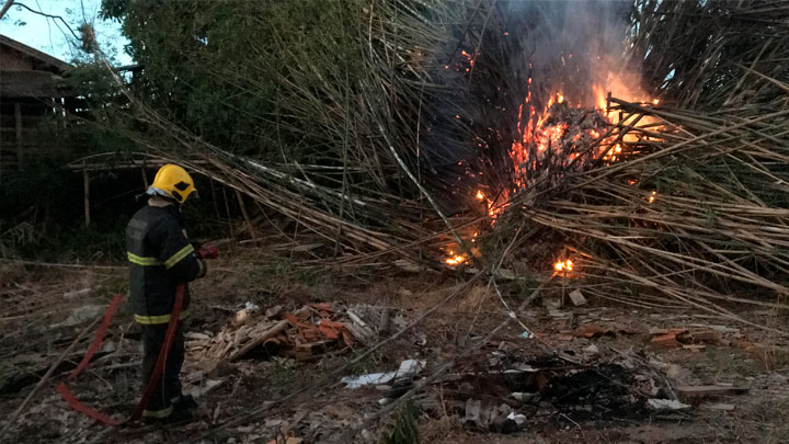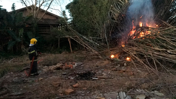 Um incêndio em bambuzal assustou moradores da rua Nova Trento, em Tijucas, no fim da tarde desta segunda-feira, 24 de maio. As chamas tiveram início pouco antes das 18h, nos fundos de uma residência do bairro Joaia.