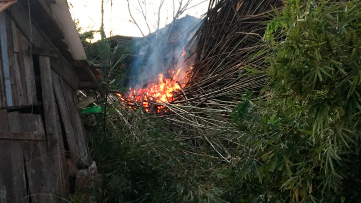 Segundo testemunhas, uma moradora teria ateado fogo em vegetação, mas as chamas se espalharam rapidamente e atingiram os bambus. Por conta da fumaça gerada e dos barulhos causados pela queima, a família que reside no terreno acionou o Corpo de Bombeiros.