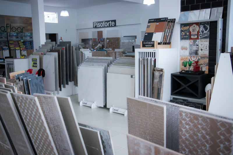 Além do tradicional piso e porcelanato, a loja ainda atua com a venda de pisos vinilicos, laminados, rodapés de poliestireno, bancadas, nichos e outros.