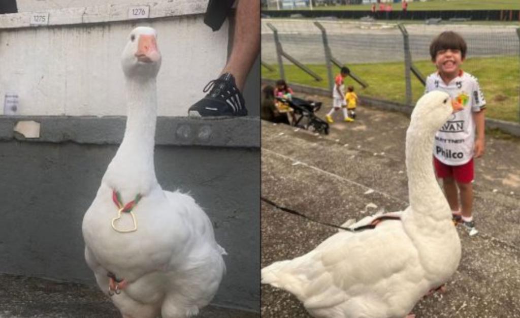 Em um lance inusitado e cheio de curiosidade, uma gansa de estimação se tornou o centro das atenções durante uma partida do Campeonato Catarinense realizada em Balneário Camboriú, no Litoral Norte de Santa Catarina. A ave, chamada carinhosamente de Lilibeth, pertence à família de um dos jogadores e surpreendeu os espectadores ao marcar presença nas arquibancadas, demonstrando entusiasmo durante o jogo.