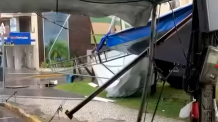 TIJUCAS - Cobertura de posto é novamente destruída e queda de barreiras deixa localidades sem acesso