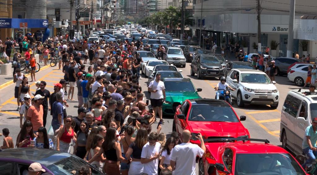 A confirmação foi feita durante um encontro de supercarros no bairro Meia Praia, em Itapema, que reuniu modelos icônicos e luxuosos, como Ferrari, Lamborghini e Tesla, alguns avaliados em mais de R$ 10 milhões. O evento também contou com a presença do tetracampeão mundial de boxe, Acelino “Popó” Freitas, que participou das atividades.