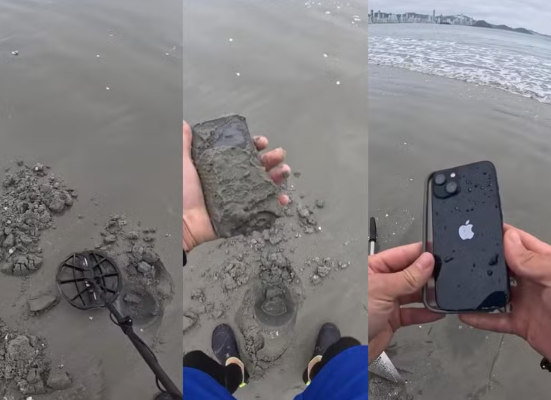 Um jovem viralizou nas redes sociais após encontrar um iPhone enterrado na Praia Central de Balneário Camboriú com a ajuda de um detector de metais. O aparelho, que estava intacto e funcionando normalmente, foi devolvido à proprietária após uma mobilização online.