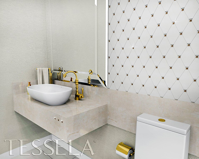 Outra vantagem é os Mosaicos da grife Tessela, já que a Casa do Revestimento é a única de Tijucas que oferece essa linha, com produtos extremamente sofisticados, com cristais Swarovski.
