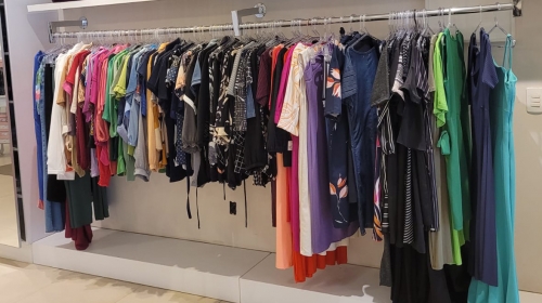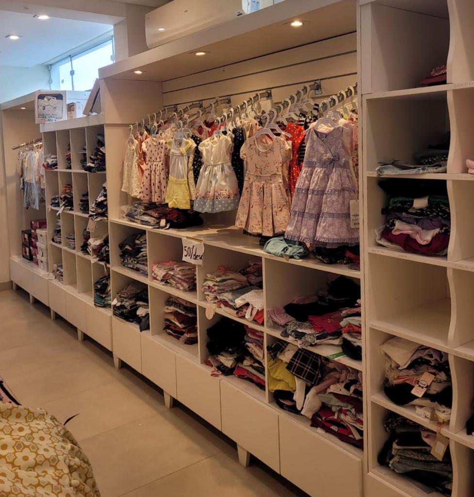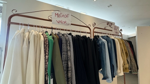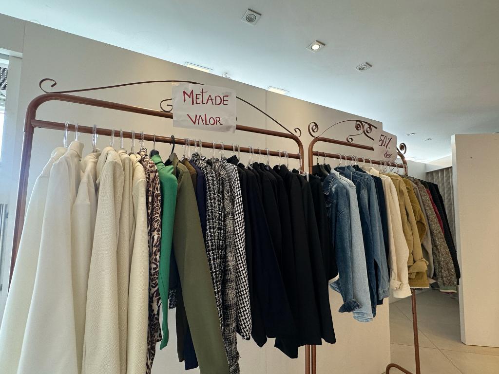 Todas as roupas, calçados e acessórios estão com 50% de desconto no valor de etiqueta. Essa promoção é valida para pagamentos via pix ou dinheiro. Para pagamentos em cartão, que pode ser parcelado em até 6x o desconto é de 40%.