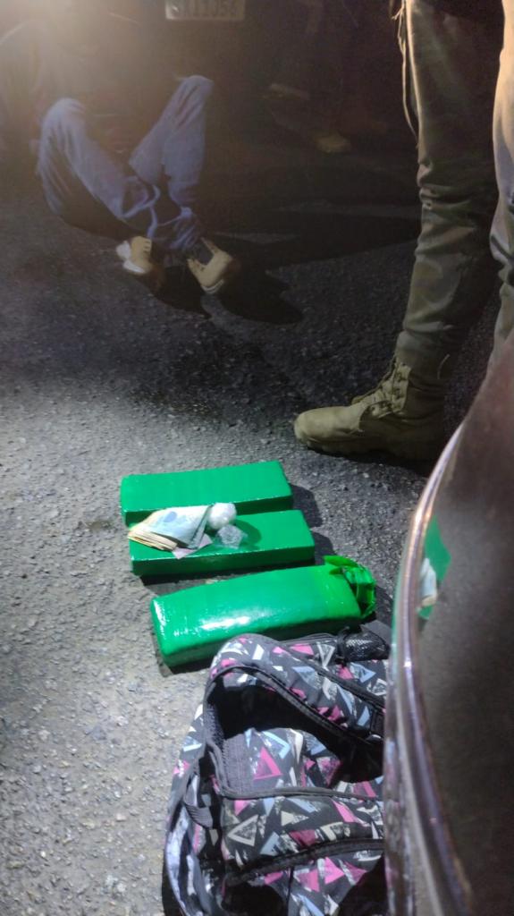 Durante a abordagem a um veículo, os policiais encontraram aproximadamente 2,9 quilos de maconha, além de 26 gramas de cocaína, dinheiro em espécie e um celular. O motorista assumiu a propriedade da droga, enquanto os demais ocupantes do carro foram liberados após prestarem esclarecimentos.