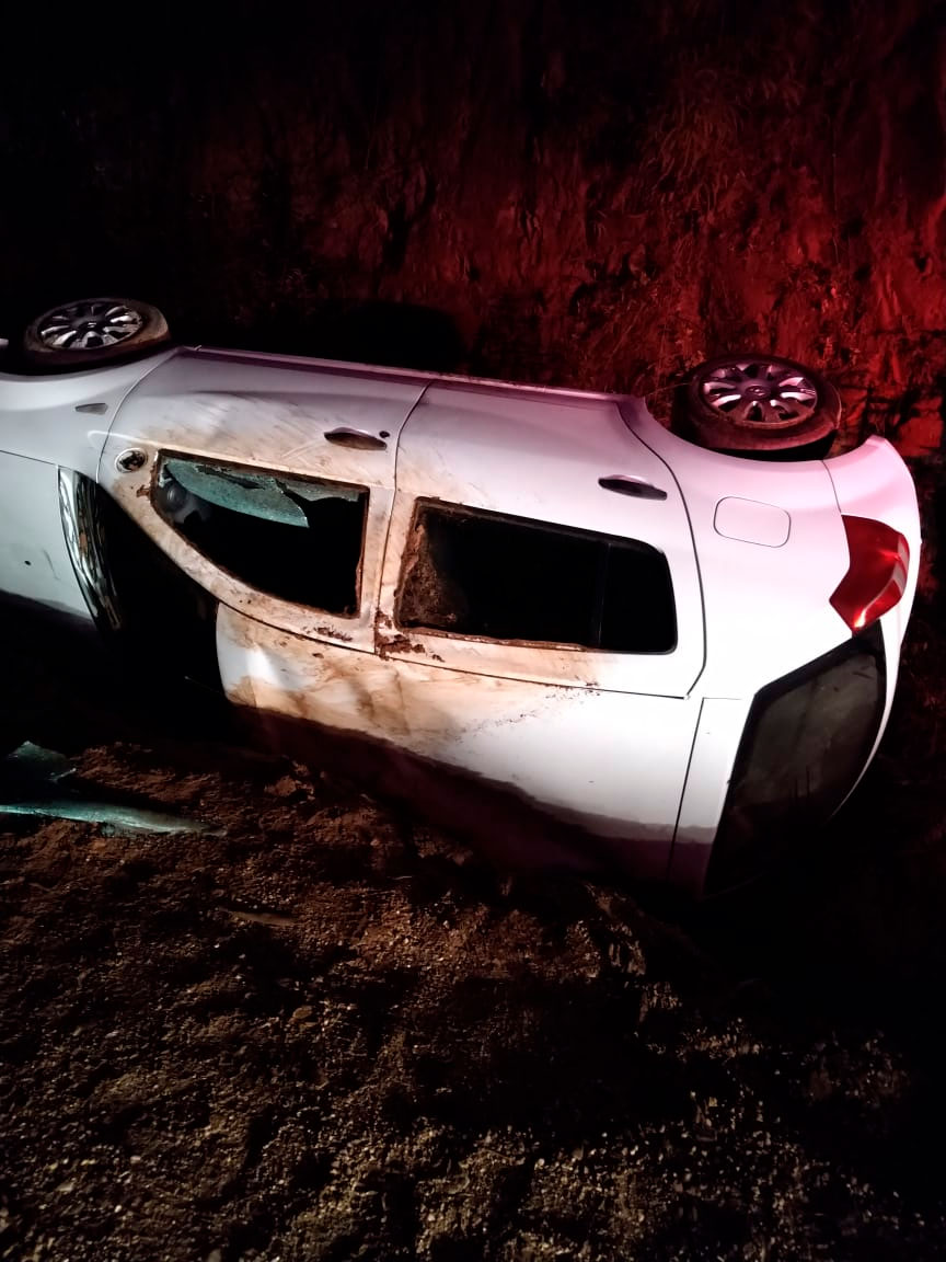 De acordo com a Polícia Militar, um Renault/Sandero, com placas de Nova Trento, capotou e ficou caído ao lado da via. Segundo o condutor, ele teria tentado desviar de uma tora de eucalipto caída na pista, quando perdeu o controle da direção.