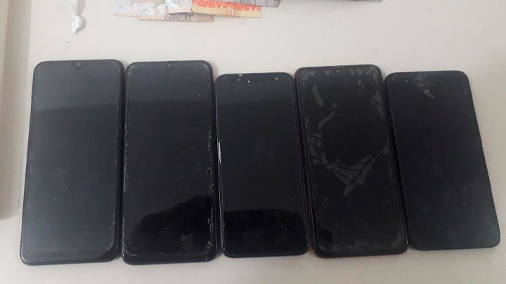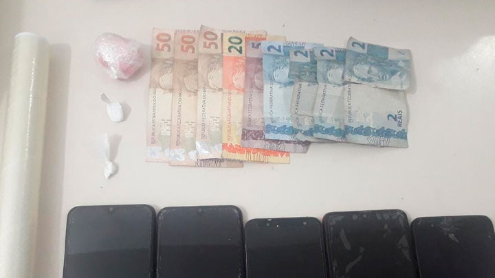 Foram apreendidos cinco celulares, mais porções de cocaína e R$183 em dinheiro. Um dos celulares estava com diversas mensagens de pedidos da substância ilícita. A filha da mulher também estava na casa. Foi preciso uso da força e algemá-las para fazer a condução até a delegacia.