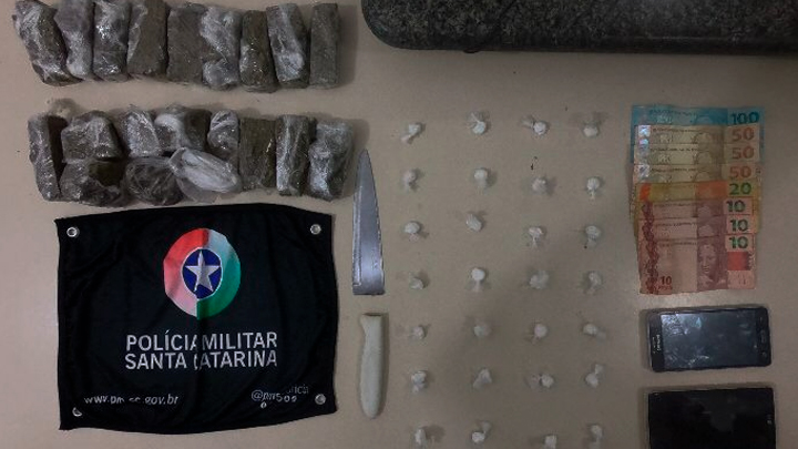 Já na residência dos suspeitos drogas foram encontradas na geladeira, na mesa da sala, dentro de um pote de Whey Protein e de um tênis. Embalagens, celulares e R$300 em dinheiro também foram apreendidos. Mãe e filho foram levados para a Delegacia de Polícia Civil.