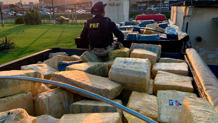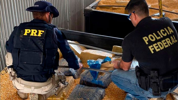 A ação conjunta entre Polícia Rodoviária Federal (PRF) e Polícia Federal (PF) resultou na interceptação de uma carga de milho com 24.523 quilos do entorpecente escondidos.