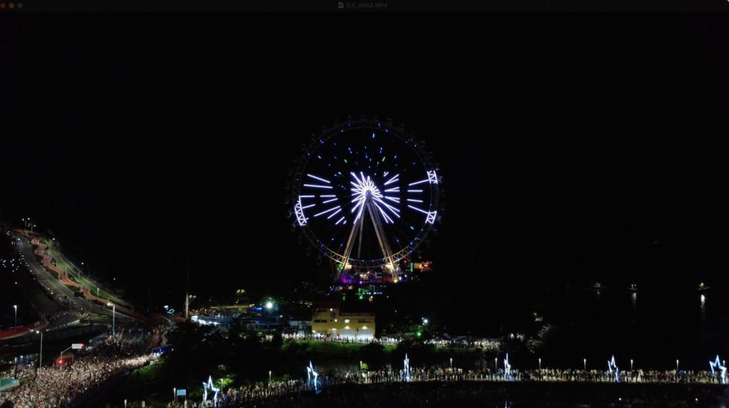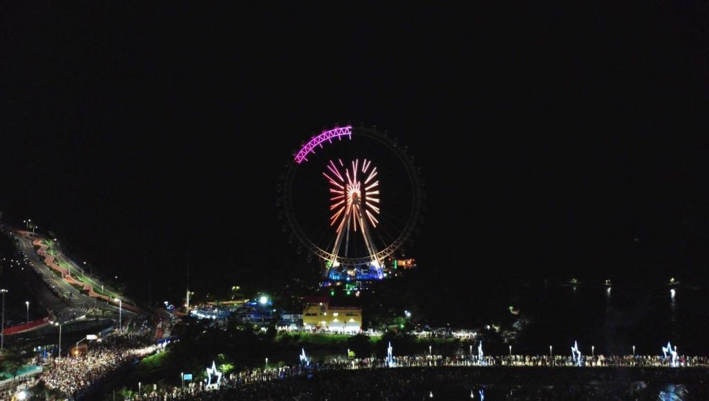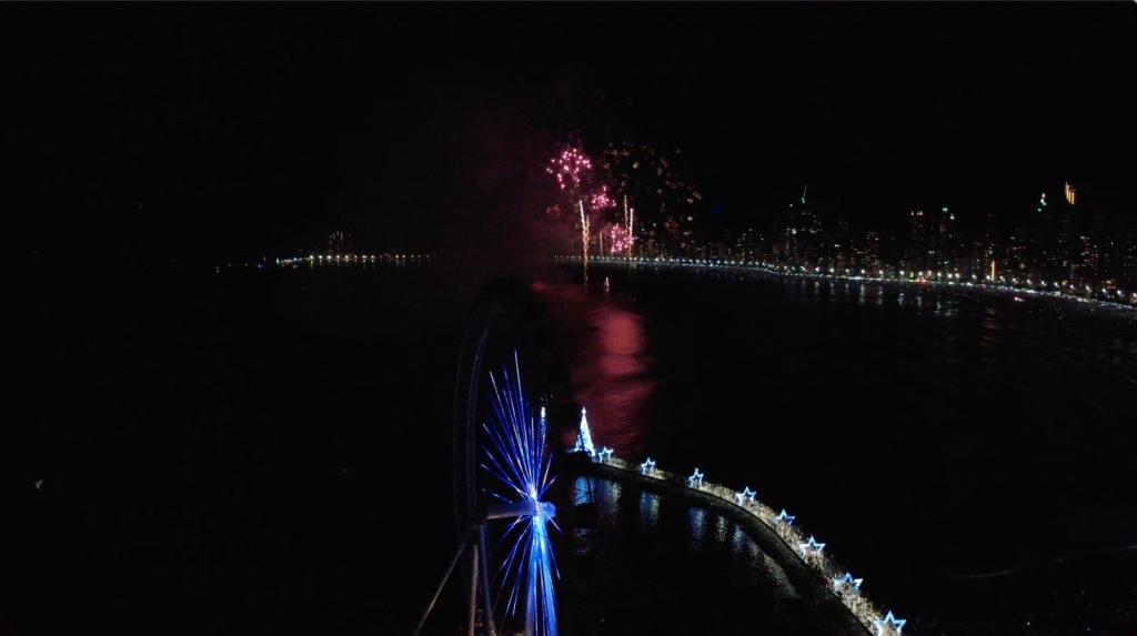 Nos segundos finais, a estrutura apresentou a contagem regressiva numérica, sincronizada com o público presente na orla. Com a chegada da meia-noite, a mensagem de boas-vindas a 2026 foi exibida na roda-gigante, dando início ao show de fogos de artifício.