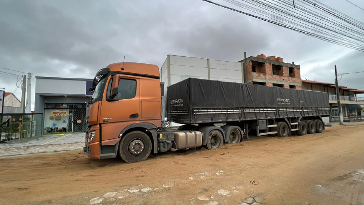 Mais uma carreta ficou atolada no trecho em obras da Avenida Coleira, em Tijucas, na manhã desta segunda-feira, 14 de novembro. Desta vez, o caso ocorreu na altura da rua Coronel Conceição, a menos de 100 metros de um caso semelhante.