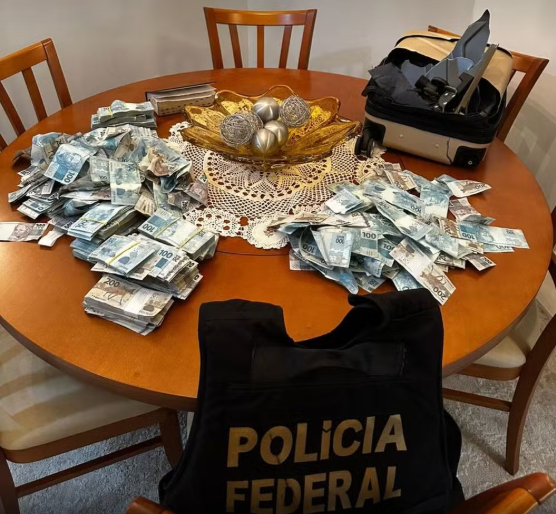 Durante o cumprimento de mandado de busca e apreensão em um apartamento em Balneário Camboriú, um dos ocupantes do imóvel arremessou pela janela uma mala contendo dinheiro em espécie. O montante foi recuperado pelos policiais. No local, também foram apreendidos dois veículos de luxo e dois aparelhos celulares.