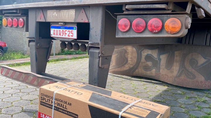 Em seguida deixou o local levando algumas máquinas. Uma das caixas foi deixada a alguns metros do baú, um dos trabalhadores pegou e a colocou próximo da porta e fechou o baú para que a sua carga não ficasse exposta.