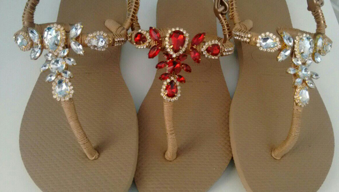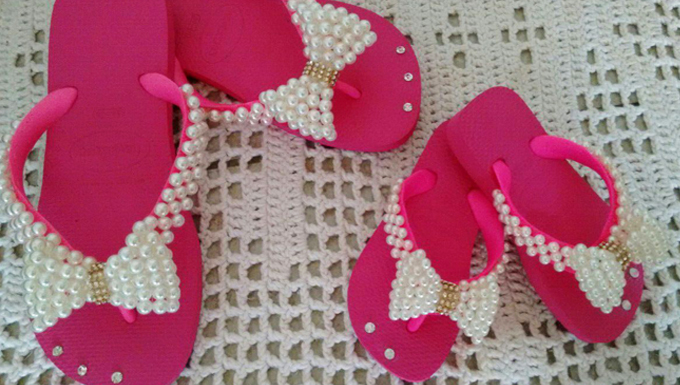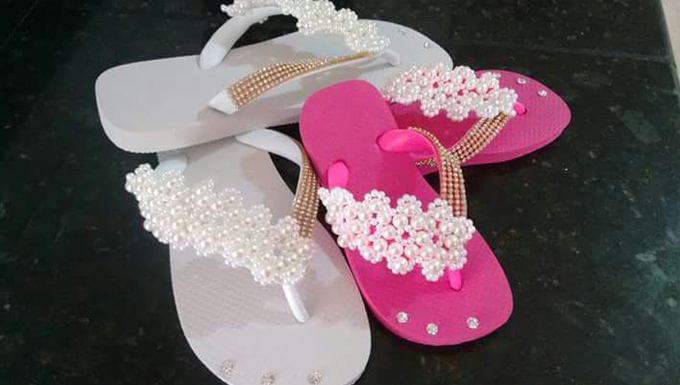 Já há quase dois anos no mercado com o Ateliê da Nina, Morgana tem mais de 25 modelos de havaianas diferentes, é pra todos os gostos. Além disso, a artesã garante que só trabalha com produtos de qualidade e nas suas customizações ela usa pérolas ABS.