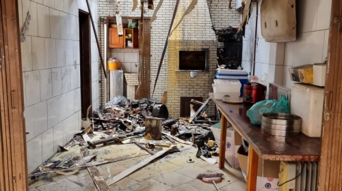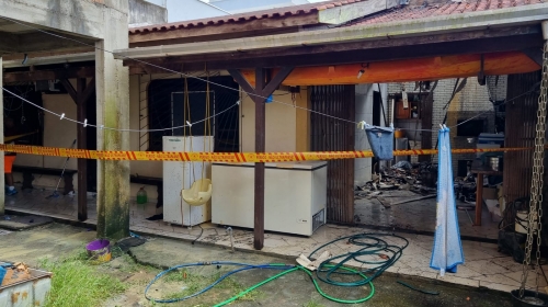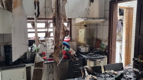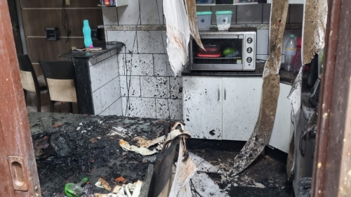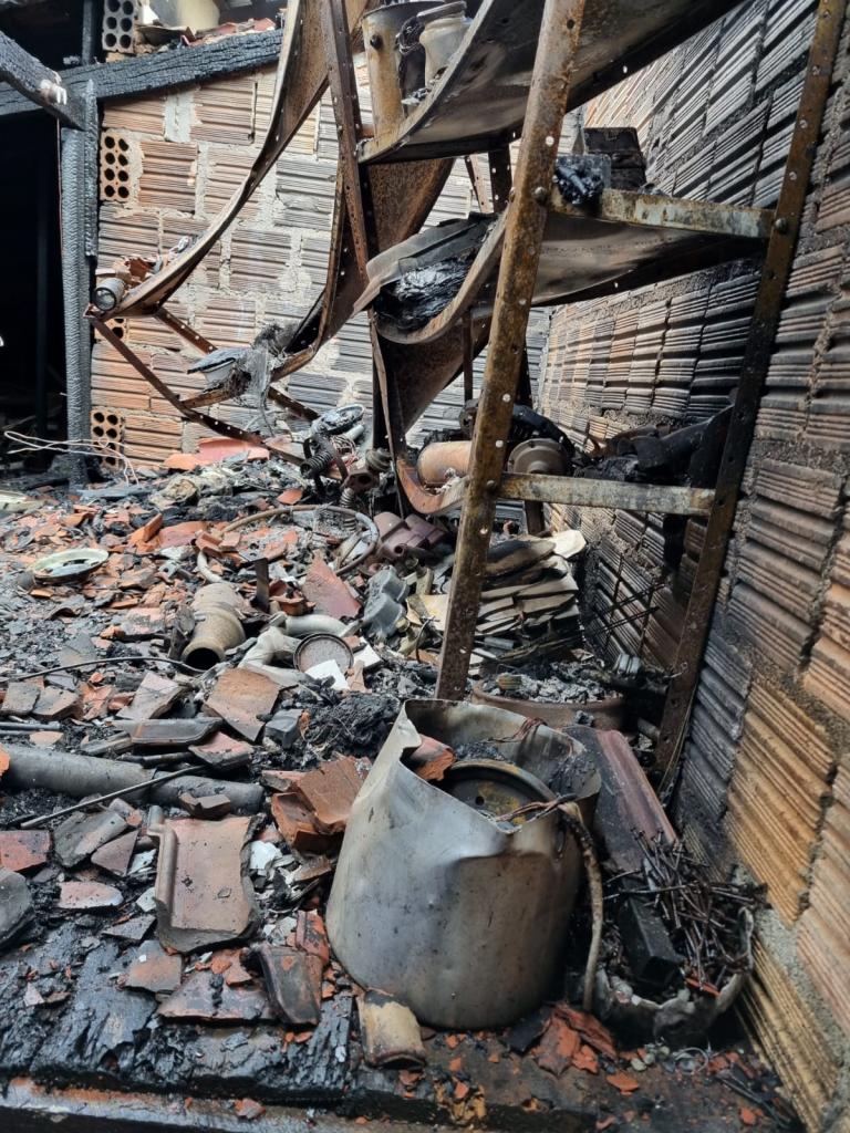 Desesperado, o proprietário de uma casa em chamas no Bairro Monte Alegre, em Camboriú, ficou com a mão queimada ao tentar salvar alguns móveis. O incêndio aconteceu por volta das 12h, desta sexta-feira, 5 de janeiro, na Rua Monte Pitangueira.