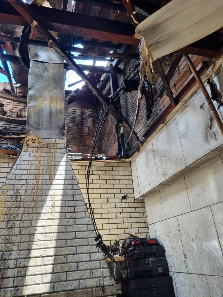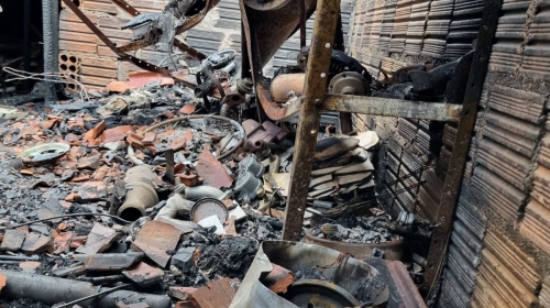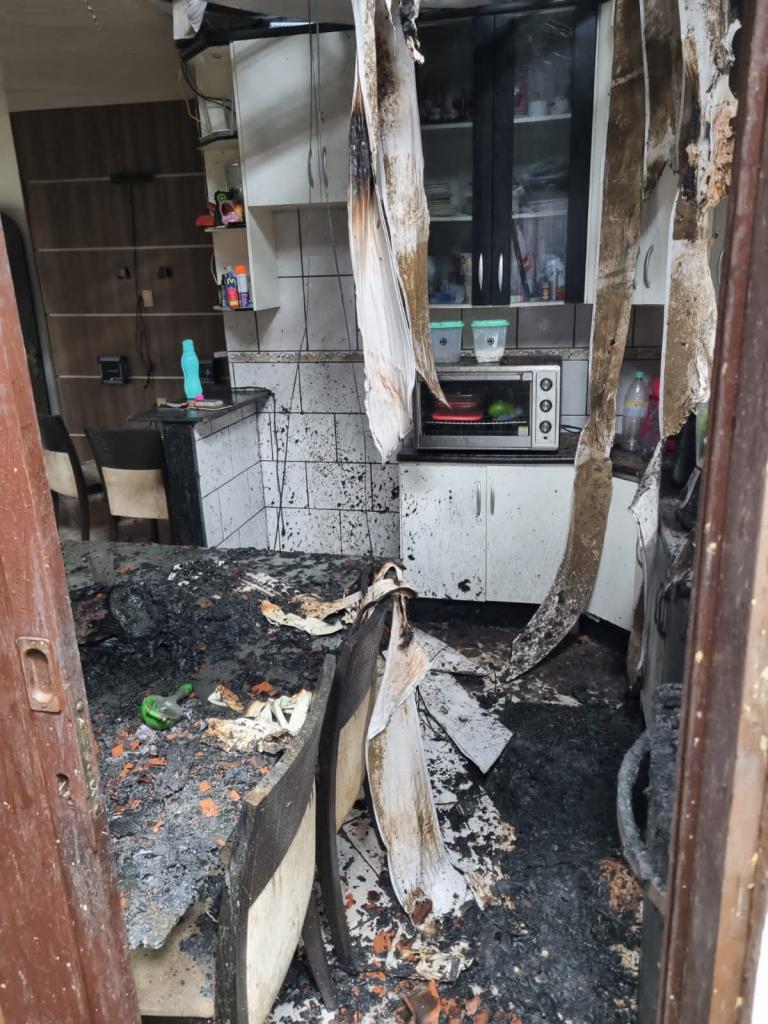 A vítima, de 44 anos, sofreu uma pequena queimadura na mão direita, devido aos móveis deslocados estarem quentes.