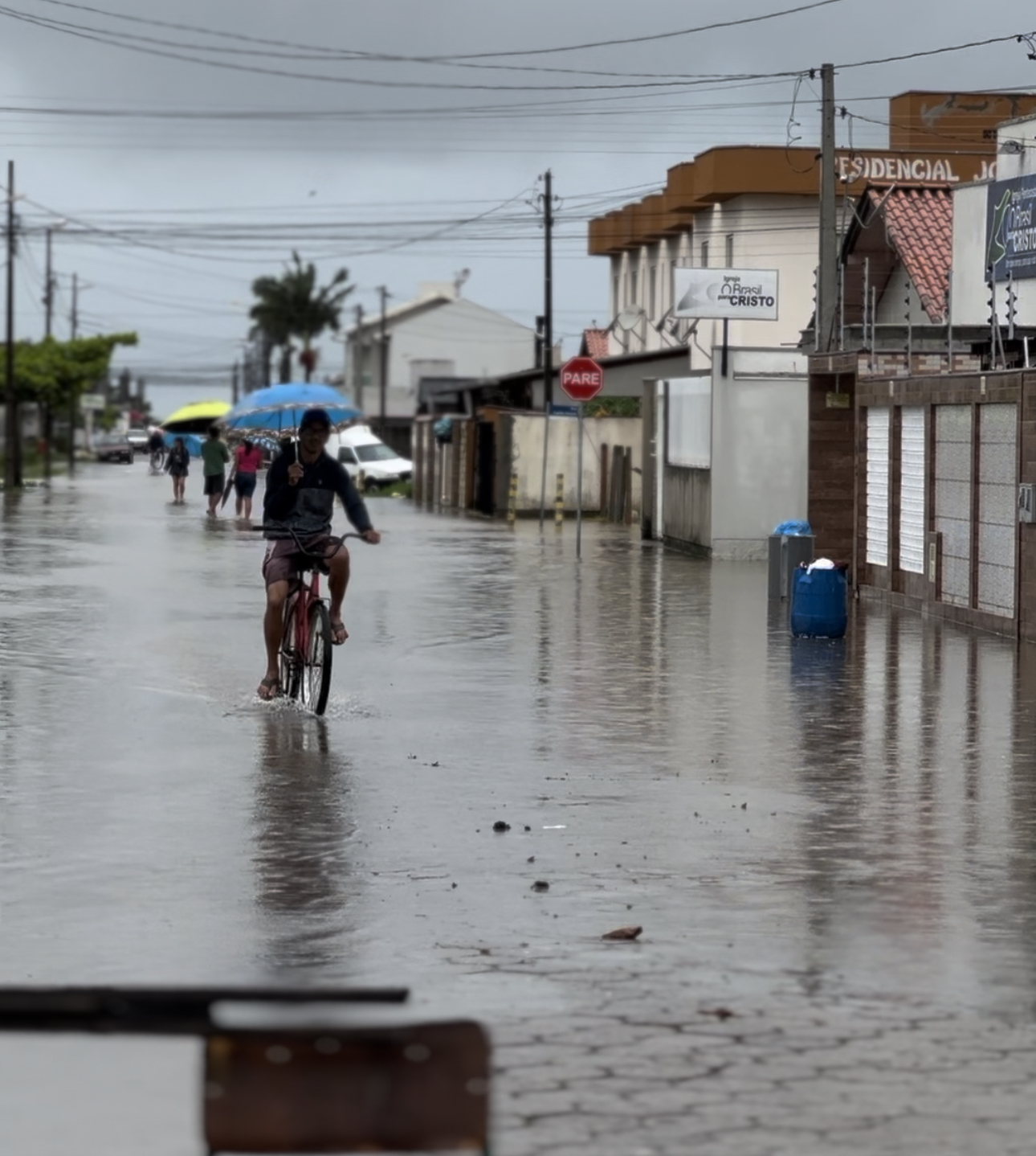 As chuvas que persisitem tem feito a água invadir muitas residências e bloquear ruas em Tijucas.