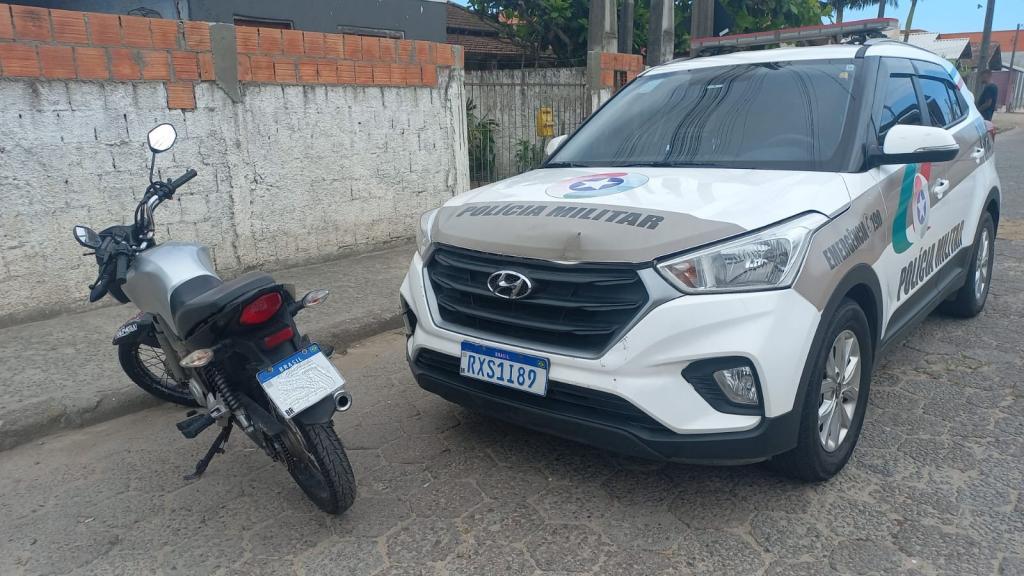 A Polícia Civil foi acionada e orientou que a motocicleta fosse removida ao pátio conveniado, onde permanece à disposição da autoridade competente para os procedimentos legais cabíveis.