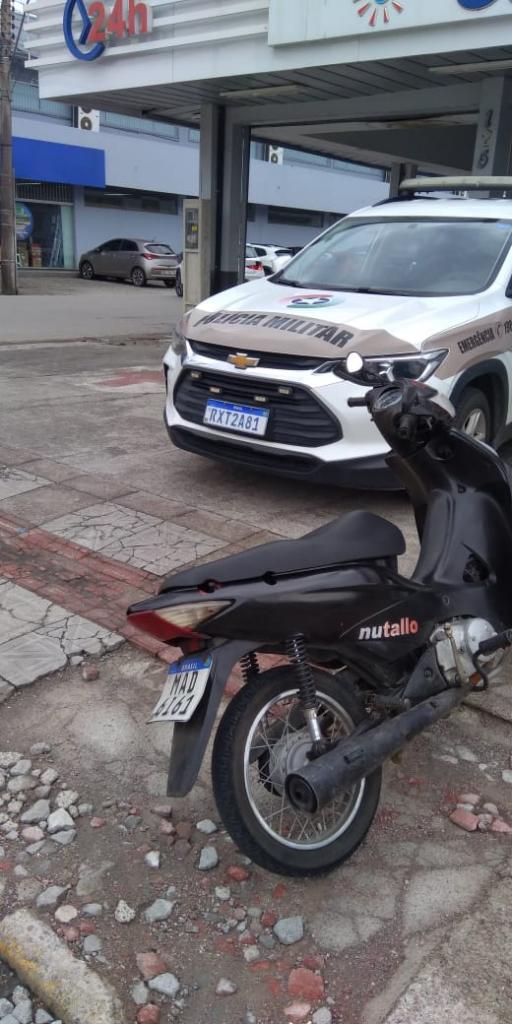 Durante patrulhamento de rotina na noite desta segunda-feira, 08 de setembro, uma equipe da Polícia Militar de Tijucas recuperou uma motoneta com registro de roubo. A ação ocorreu na Avenida Bayer Filho, nas proximidades da Farmácia São João, quando os policiais notaram uma motocicleta Honda Biz, de placas MAD6I61, emitindo ruído excessivo na descarga.