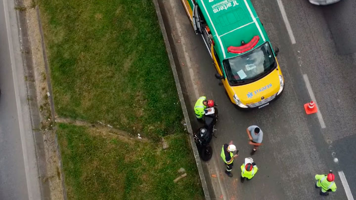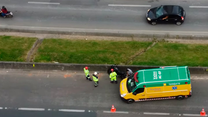 A equipe de resgate da AutoPista socorreu o rapaz que teve apenas o primeiro nome identificado. Tiago conduzia sua moto em alta velocidade no corredor entre os carros.