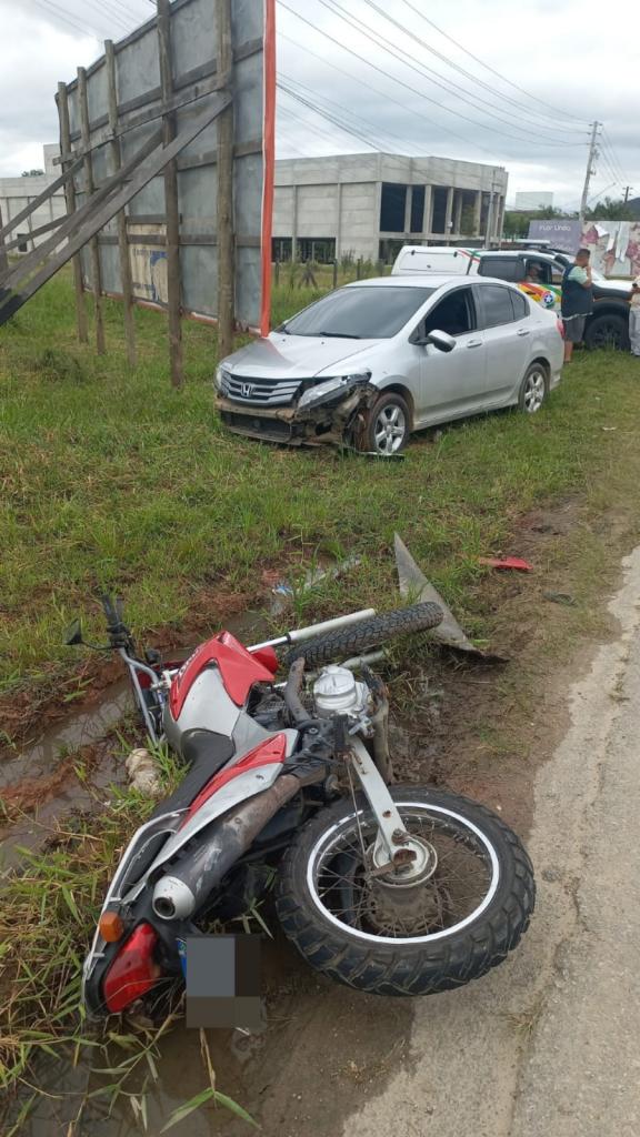 Conforme a PMRv, o motociclista saiu do pátio de uma empresa pela contramão e, ao tentar retornar à via no sentido correto, acabou cortando a trajetória do carro, que seguia no mesmo sentido, provocando a colisão. O condutor da moto teve ferimentos graves e foi socorrido pelo Corpo de Bombeiros Militar, sendo encaminhado ao hospital de São João Batista para atendimento médico. Já a condutora do automóvel, de 29 anos, não se feriu.
